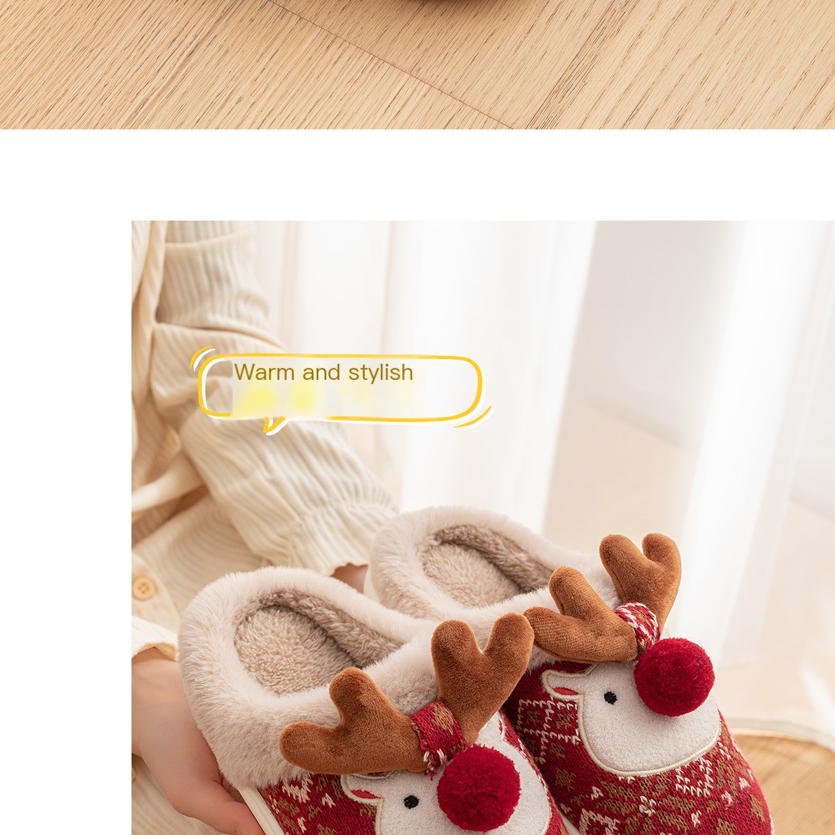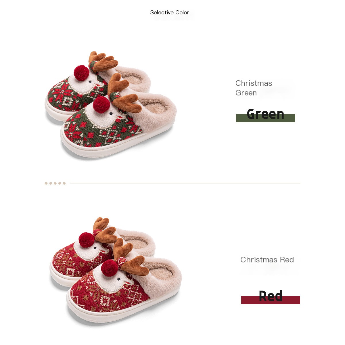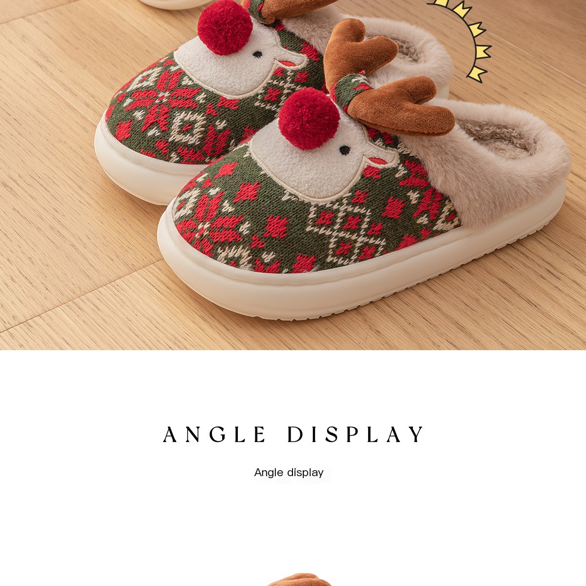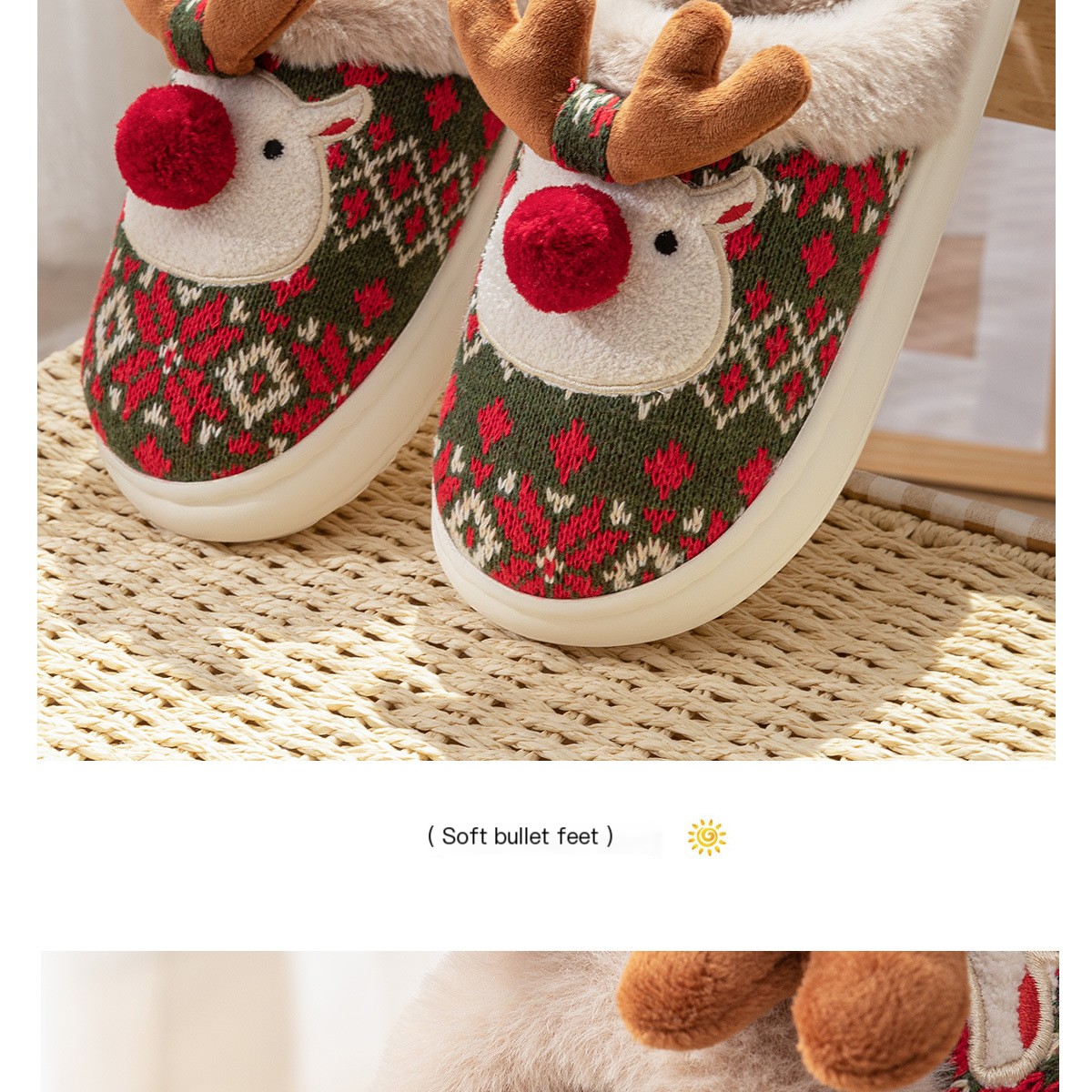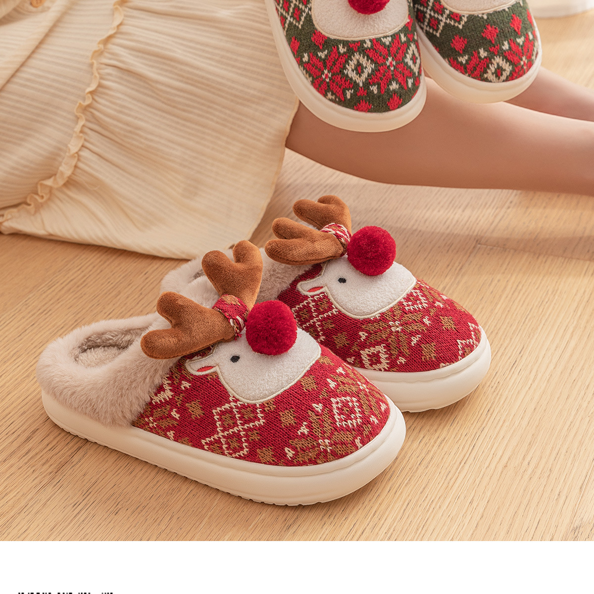 2024 Novos chinelos de algodão de Natal para mulheres, fofos, desenhos animados, veados, antiderrapantes, meninas, sapatos de chão para casa, moda, festa, slides