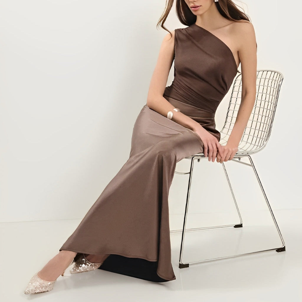 Vestido de Mujer Aura de Satén - Un Solo Hombro, Máxima Elegancia